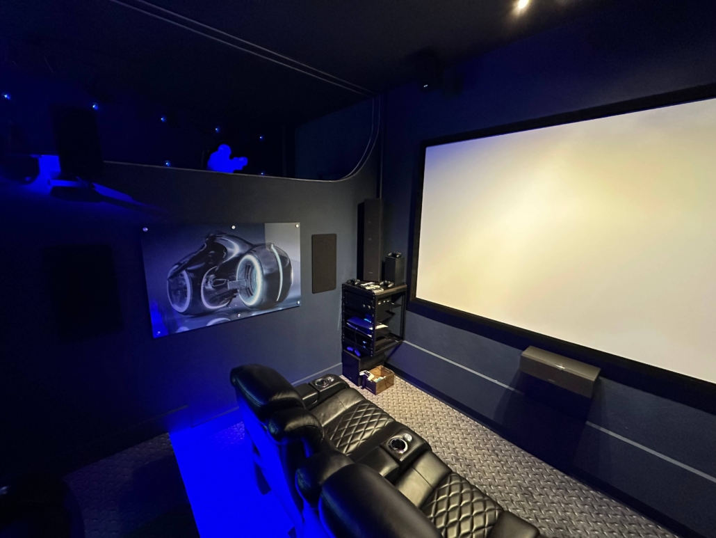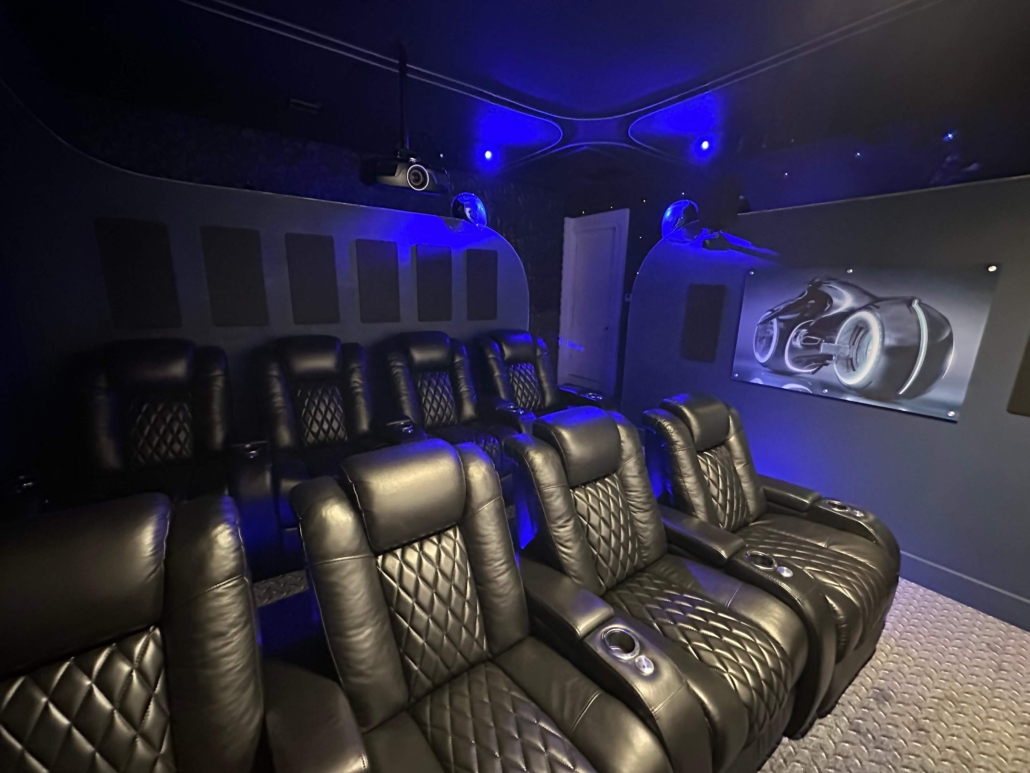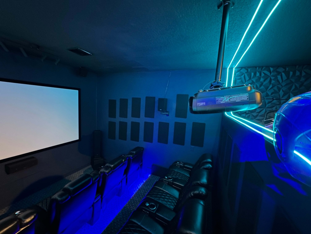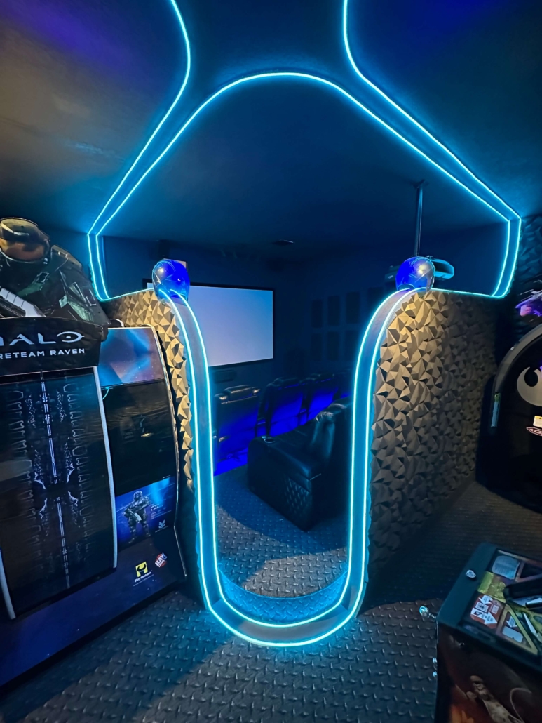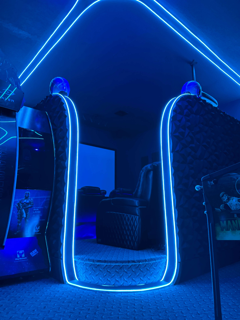 What started as a simple garage has been transformed into a fully immersive movie room and arcade. Every detail was carefully thought out, from upgrading the air conditioning system to rewiring the lighting, ensuring the space delivers a true cinematic experience.